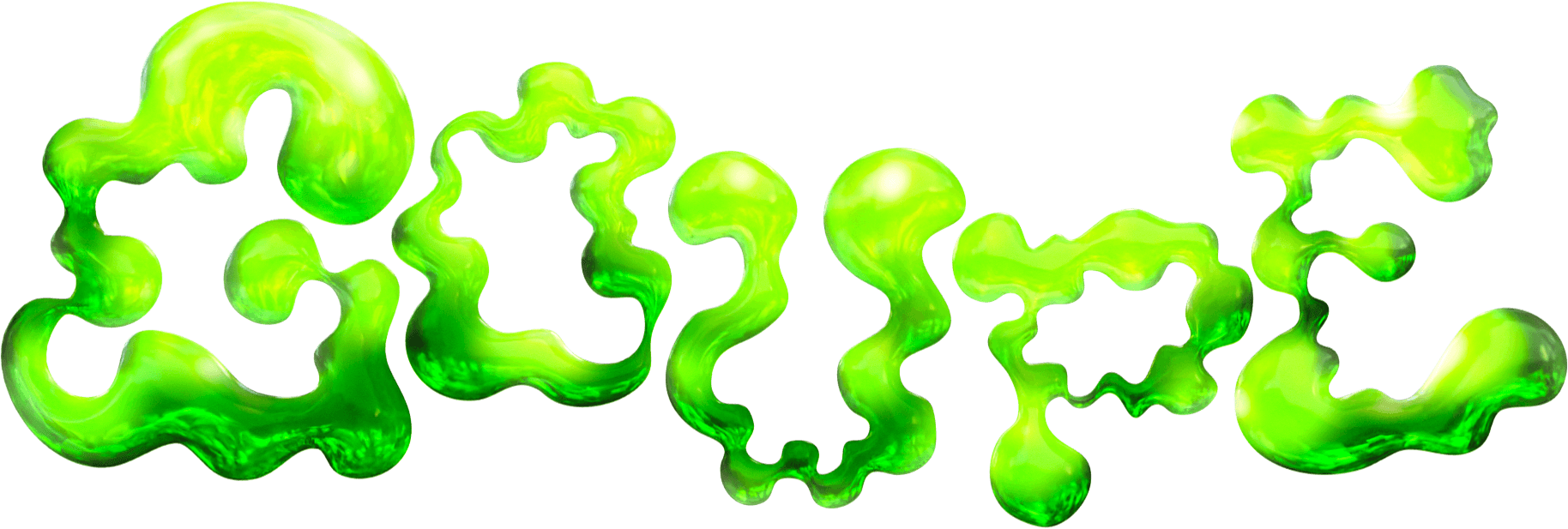 Liquid chrome entangles an iconic 90s acid smiley in Y2K fashion. Matrix-like background. Custom goop font for DR. GABBA, which informed the later Goupe font.